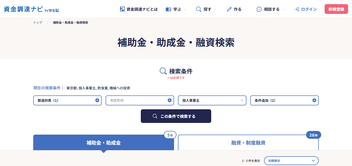 補助金や助成金、融資を比較しやすくなったことで、より調達手段を探しやすいページとなりました。
