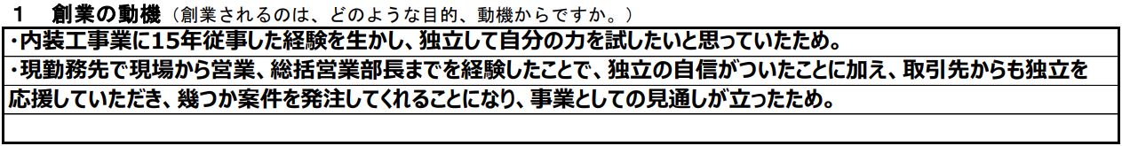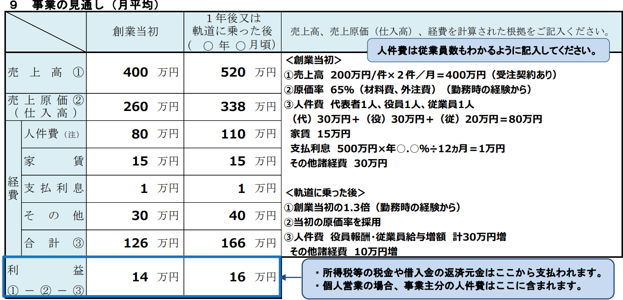 画像引用:創業計画書記入例(内装工事業)|国民生活事業|日本政策金融公庫 ![]()